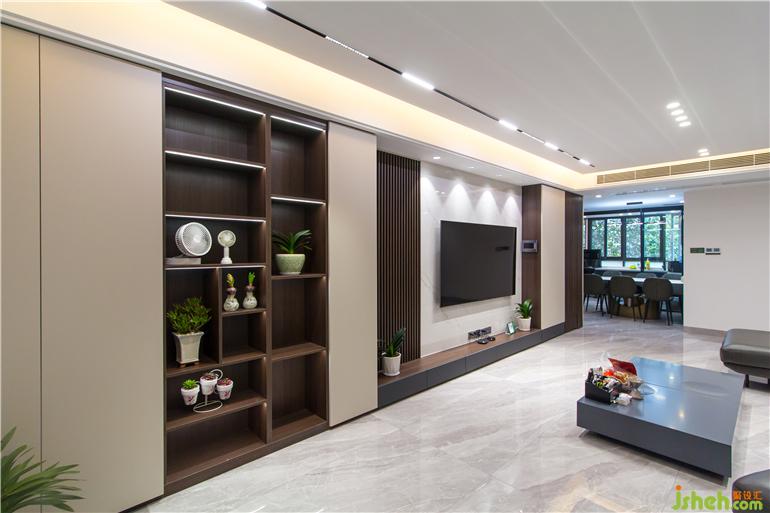 深圳現(xiàn)代設(shè)計空間上選用具有現(xiàn)代質(zhì)感的材料設(shè)計,內(nèi)斂的啞光材質(zhì),相比于閃耀的亮面材質(zhì),更加凸顯空間質(zhì)感。深淺咖色的木質(zhì)背景色和白色的大理石顏色形成鮮明對比,展示性豐富的柜體立面,整個客廳給人眼前一亮,營造出大氣的空間氛圍。黑色的意式皮沙發(fā)與極具質(zhì)感的黑色布藝窗簾,跟餐廳的電器柜相互呼應(yīng),整體色調(diào)和諧統(tǒng)一,彰顯品質(zhì)。寬闊的空間格局,通透明亮,黑色的色調(diào)設(shè)計在這里一點都不壓抑。深色配色風(fēng)格中,極具視覺張力的色彩,構(gòu)成剛剛好的空間溫度。