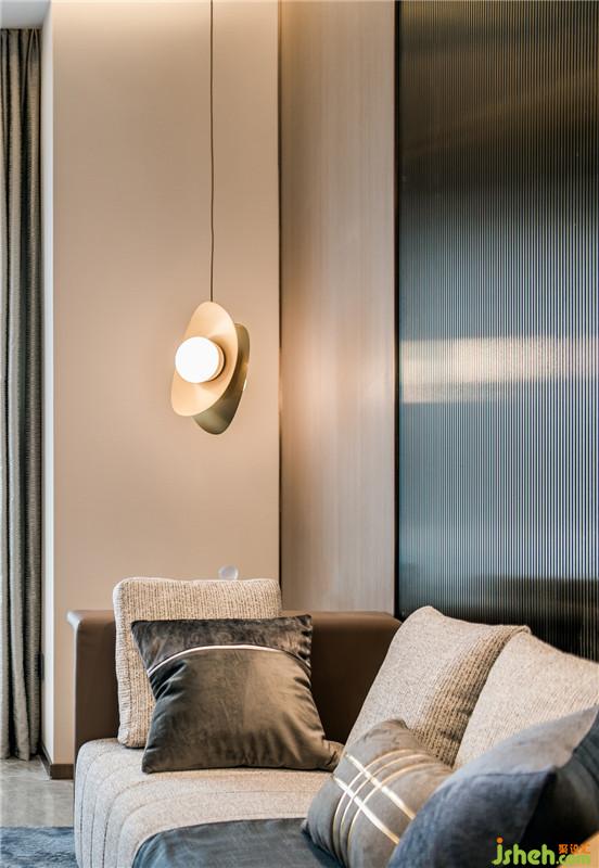 軟裝藝術(shù)設(shè)計(jì)繁簡(jiǎn)有序,亦有著自然流動(dòng)的節(jié)奏變換。客廳區(qū)域干凈簡(jiǎn)練,只以一個(gè)璀璨的金色藝術(shù)吊燈渲染空間氛圍。