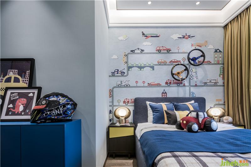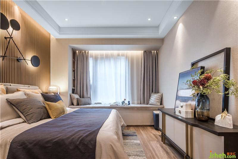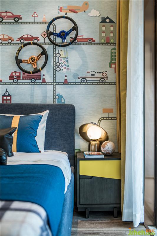 臥室空間設(shè)計融入了簡約的幾何色塊,散發(fā)著時尚溫馨氣息,通過抽象飾物和雅致配色,予人安心怡然體驗。室內(nèi)設(shè)計師