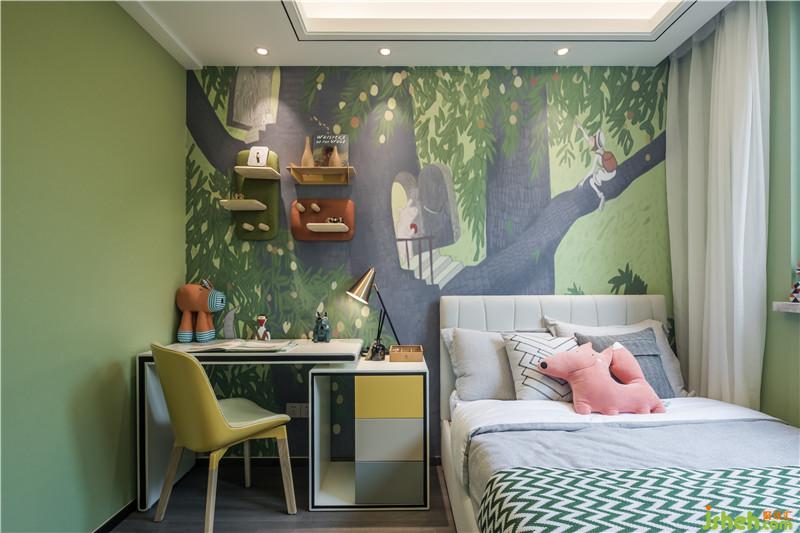 幾米風(fēng)的兒童房設(shè)計(jì),讓空間中春天的清新氣韻撲面而來(lái),一種趣盡天然的純真自在攀爬在窗欞、樹(shù)梢.....
