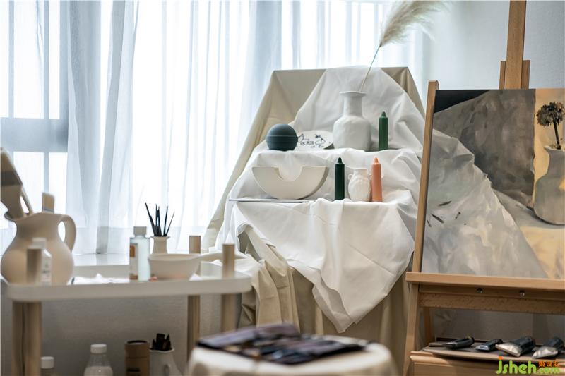 書房營造成畫室,藝術(shù)氣息撲面而來,寫生課上常見的靜物、幾何石膏像和畫架,經(jīng)由設(shè)計(jì)師的精心組合,隨意而真實(shí),訴說主人的愛好。