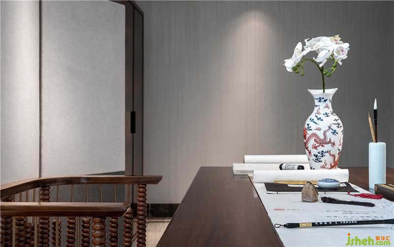 明亮的自然光照、古雅別致的圈椅、富有表現(xiàn)力的墻面鏤刻書(shū)法字,設(shè)計(jì)師在書(shū)法室這一隅空間中體現(xiàn)了許多不同尋常的室內(nèi)細(xì)節(jié),且讓每個(gè)元素和諧地兼容在一起。別墅裝修設(shè)計(jì)