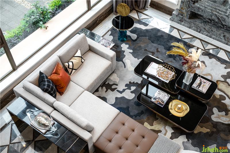 一層客廳空間,整體設(shè)計層次豐富且互相滲透協(xié)調(diào),在多元材質(zhì)、元素、文化符號的碰撞中,營造出獨具一格的空間對話語言,時而訴說文化歷史、時而演繹經(jīng)典時尚、時而置換時空次序、時而營造藝術(shù)靈境,讓我們在和諧整體的大氛圍中,不斷捕獲折衷主義的新生魅力。