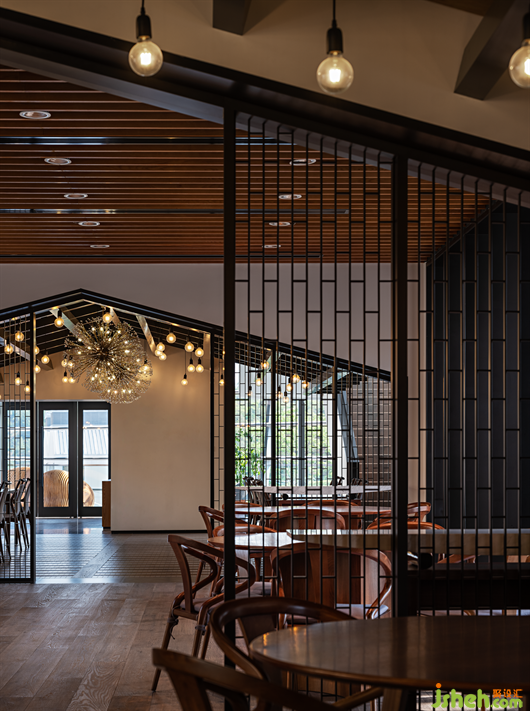 在這里,設(shè)計(jì)師特意營造一個(gè)舒適清和的就餐空間,也為日常休息時(shí)相互交流、情感溝通等提供了一個(gè)富有生活滋味的放松場所。設(shè)計(jì)將天然色系引入空間,整體自然清雅,中與西、新與舊互相融合,營造出和諧的空間氛圍,無論是木飾還是黑色鐵藝,中式風(fēng)靠椅還是現(xiàn)代感的吊燈,無不服務(wù)于空間整體和諧清雅的氣質(zhì)。