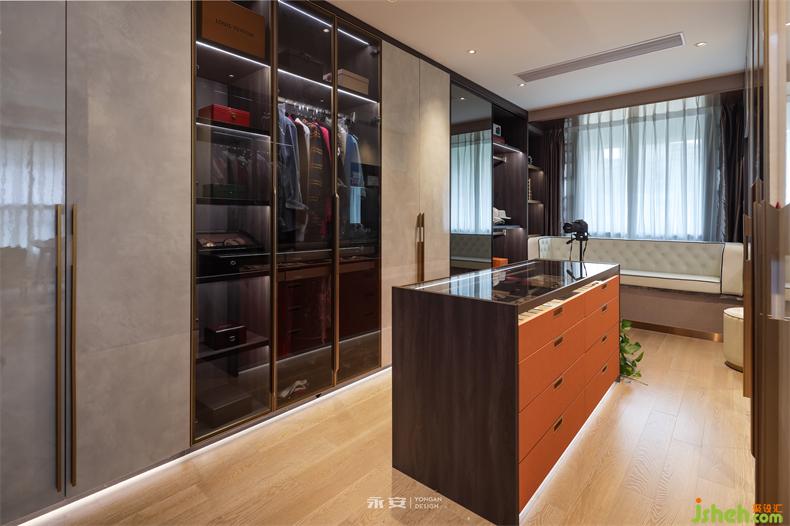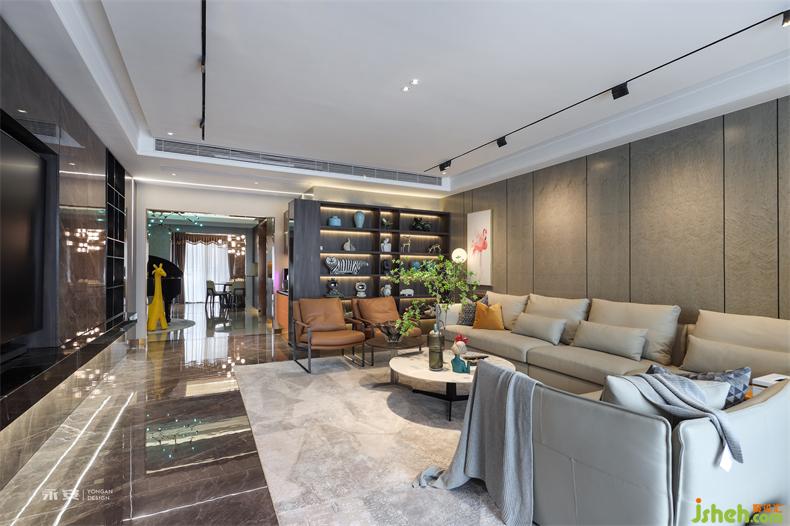 本案深圳豪宅設(shè)計(jì)風(fēng)格為現(xiàn)代輕奢風(fēng)格,采用時(shí)尚精簡(jiǎn)、低調(diào)內(nèi)斂的高級(jí)灰是用于家居裝扮的首選基調(diào)色彩,呈現(xiàn)優(yōu)雅魅力和精致大氣的視覺(jué)感官,符合人們對(duì)現(xiàn)代生活的審美需求。同理,作為潮流都市代表色之一的雀眼木色,居家設(shè)計(jì)中的運(yùn)用中,讓空間張揚(yáng)不浮夸、經(jīng)典且時(shí)尚,成為永恒不變的奢侈品味。