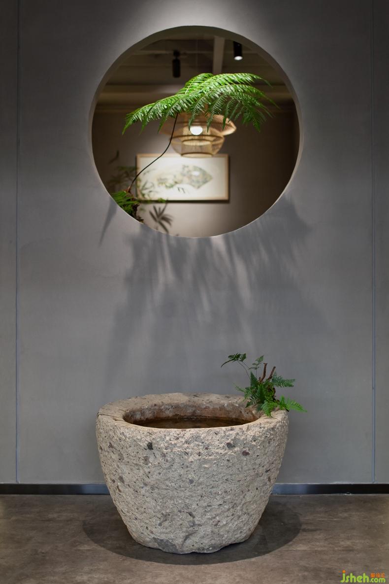 入口月亮窗,是一幅唯美畫(huà)面,一只金絲猴美月探出窗外,空間、人、植物、已分不清前后關(guān)系,使人在空間一入口即入畫(huà)中來(lái)。