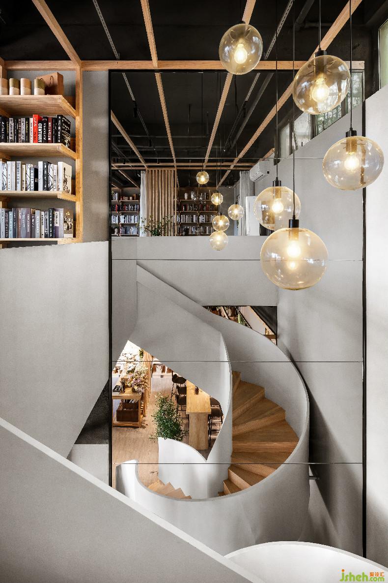 旋轉(zhuǎn)樓梯和櫥窗的中軸線相對(duì)應(yīng)室內(nèi)設(shè)計(jì)師