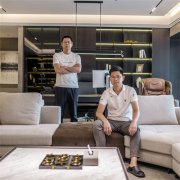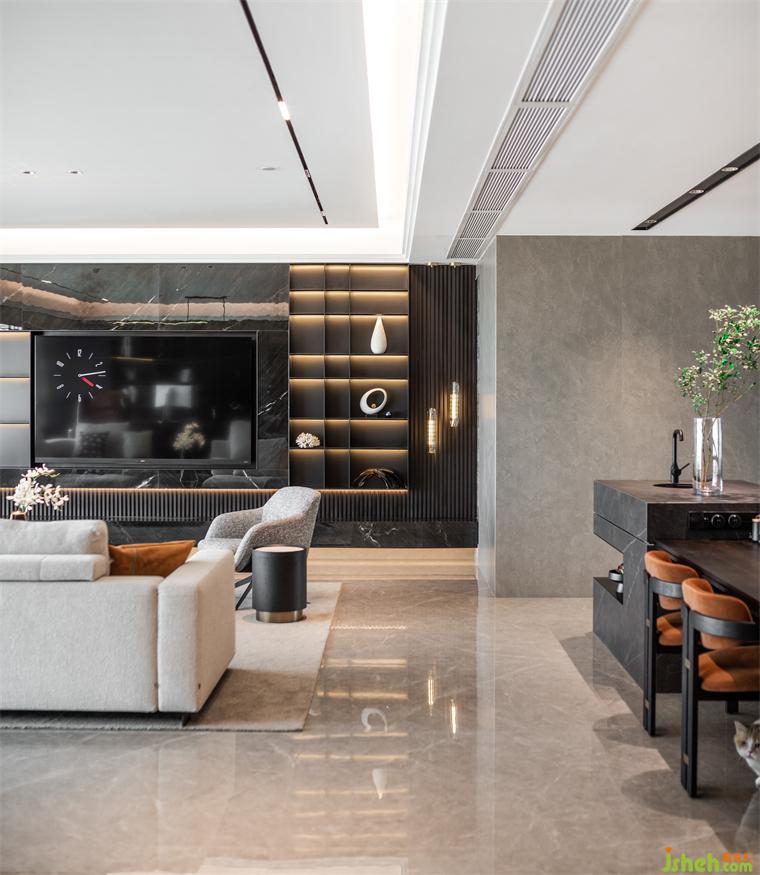 本案為現(xiàn)代輕奢風(fēng)格,業(yè)主是成功青年企業(yè)家,喜歡深色調(diào),深圳豪宅設(shè)計(jì)整體空間我們利用深色石材,金屬,及煙熏橡木打造沉穩(wěn)的空間品質(zhì)。