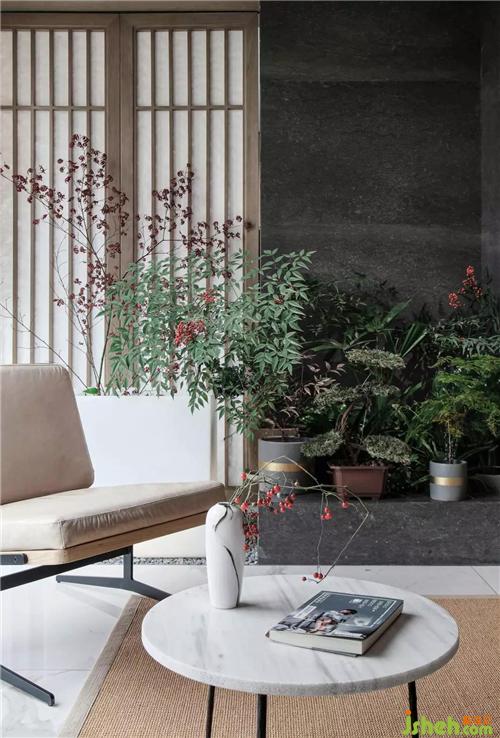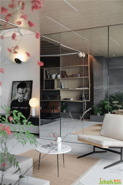 不經(jīng)意間看到一處小景,將室內(nèi)空間和窗外的景色融為一體,而且設(shè)計(jì)師不滿足于此,在對面安置了鏡面,將遠(yuǎn)處的牛首山引入到空間的視線里。對于造景,設(shè)計(jì)師用借景手法營造出對自然的崇敬,意外而驚喜。設(shè)計(jì)師敬畏于自然,把陽光和雨露、四季現(xiàn)象結(jié)合于室內(nèi)空間,讓空間順從自然規(guī)則。當(dāng)然,我們已經(jīng)忽略了眼前的落地玻璃窗,它就好比人的眼睛一樣”晶瑩透徹”,看著眼前美麗的世界。