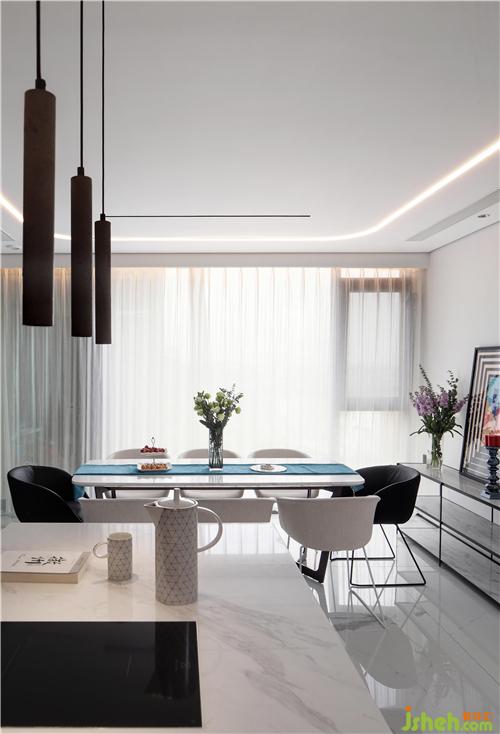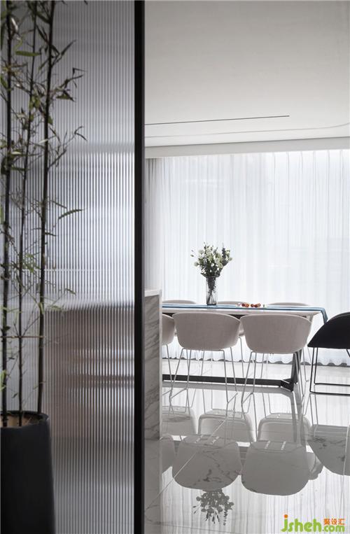 透著餐廳的光,紫竹影在玻璃隔斷上。女主人正在島臺為小孩做早餐,自由自在的一天從這個西式的早餐開始,怡然、愜意??拷泵娌AТ笆羌彝?人長餐桌南京裝修設(shè)計(jì),這正是設(shè)計(jì)師記憶中兒時情景的設(shè)計(jì):同樣的傍晚,一家人坐在這里享用晚餐,看著窗外的景色與天空漸黑的過程,爸爸對著兒子、女兒說起曾經(jīng)的故事......