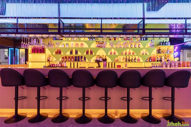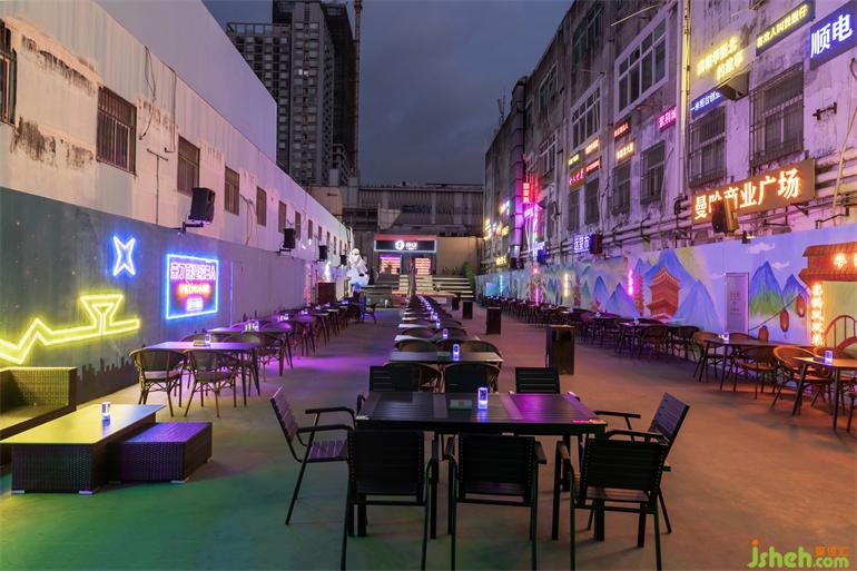酒館的室內(nèi)環(huán)境現(xiàn)代而充滿歡樂,在深圳這個擁有著年輕血液的城市中開辟出一個。棋牌室設計師將其定義為一個不斷變化的環(huán)境,從而可以滿足一天內(nèi)人們晚上的不同需求,從小吃到宵夜和酒飲,為顧客們提供全天候的飲食,更為他們創(chuàng)造出一個全天候的共享式體驗空間和活動空間。這座小酒館充分利用了華強北的步行街,設置了一系列讓人想一探究竟的室外座椅。值得一提的是室外的霓虹燈,這個霓虹燈在整個酒館設計中建立了一個反復出現(xiàn)的主題:即將室外元素帶進室內(nèi),反之亦然。使夢人回華強北1983那個基工建設最火熱的年代
