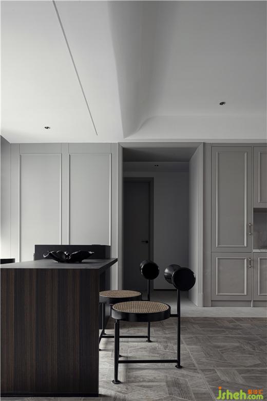素色的水泥質(zhì)感地面,與幾何交錯(cuò)的木紋磚形成對(duì)比,家裝設(shè)計(jì)以強(qiáng)烈的碰撞,加深空間的節(jié)奏感,營(yíng)造出低調(diào)略帶高級(jí)的美感空間。