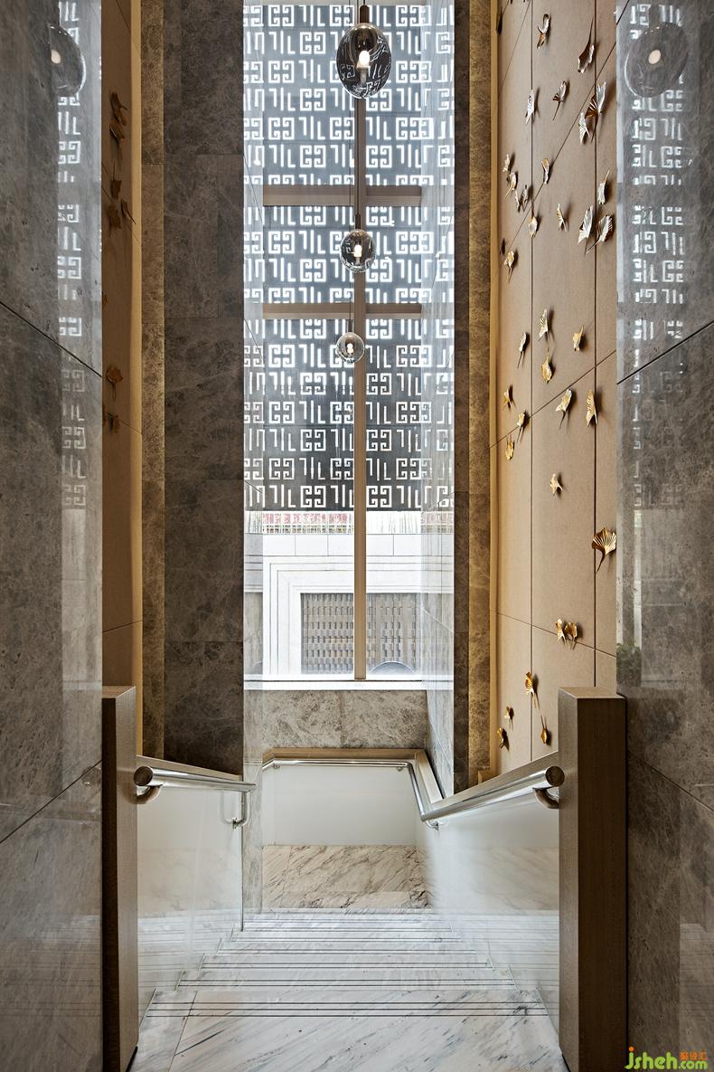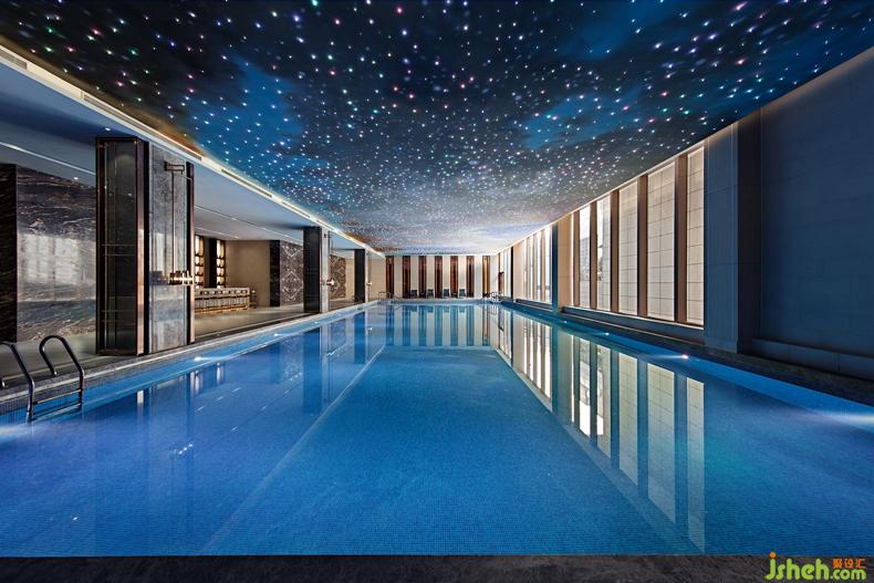 值得一提的是游泳池空間,玻璃幕墻與室外空間自然銜接。天花由精致星空彩繪與數(shù)百顆光纖燈彼此融合、映襯,仿佛置身于神秘的宇宙星辰,使得空間更加富有靈氣且充滿意趣。當夜幕降臨,透過幕墻與星空交相輝映,愉悅動人。