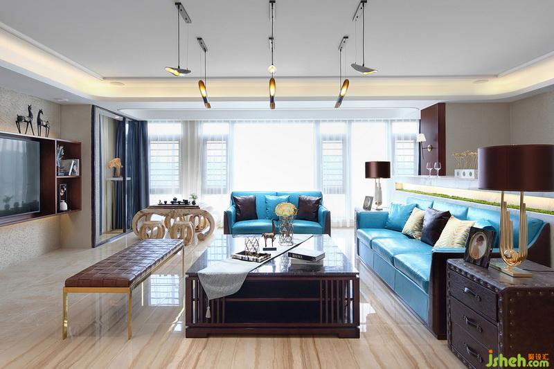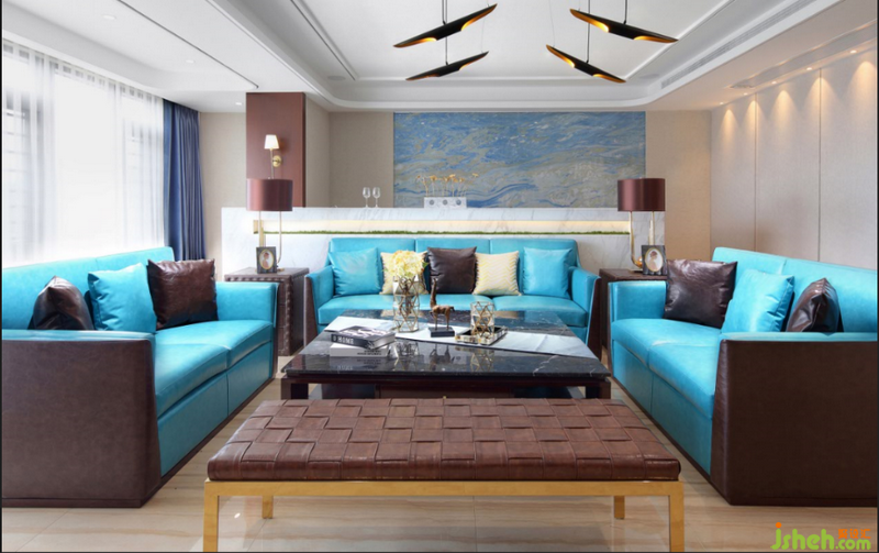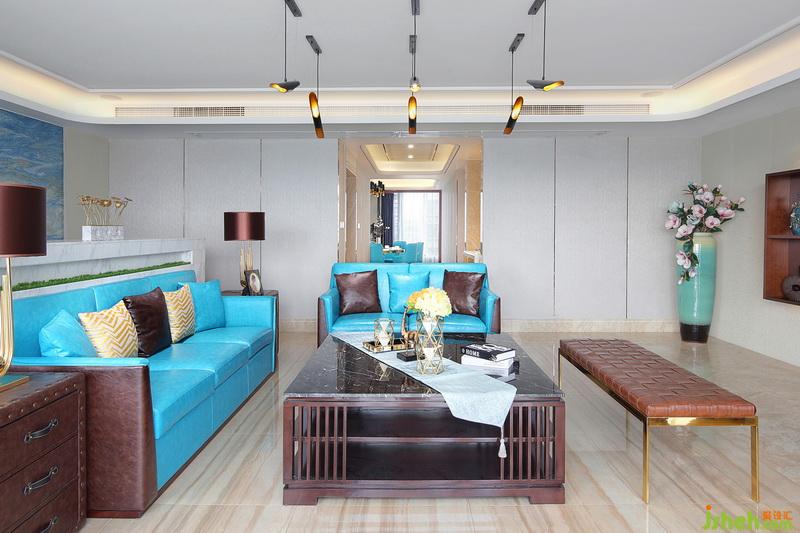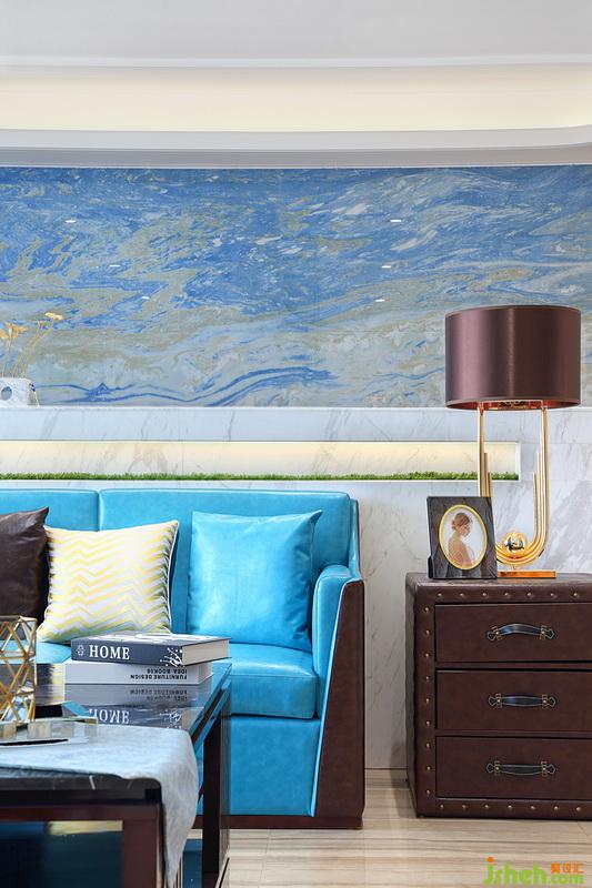 本案業(yè)主回歸兒時家鄉(xiāng),希望自己的家干凈,純潔,環(huán)保。大片的落地窗,讓藍色的天空飄進客廳,溫暖的陽光照在身上,是多么的舒服??蛷d墻壁的軟磁,是兒時玩的泥土,地磚的花紋,猶如門前的小溪流水,藍色的沙發(fā)坐墊同吧臺后的海闊天空背景相得益彰,一切的一切,是那么的舒服。身在其中,就猶如置身于藍天白云中。簡潔的墻壁,在玫瑰金的裝飾下,讓空間不再單調(diào),反而有了一些高貴。