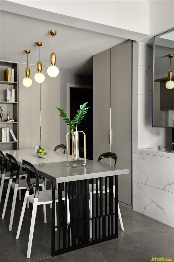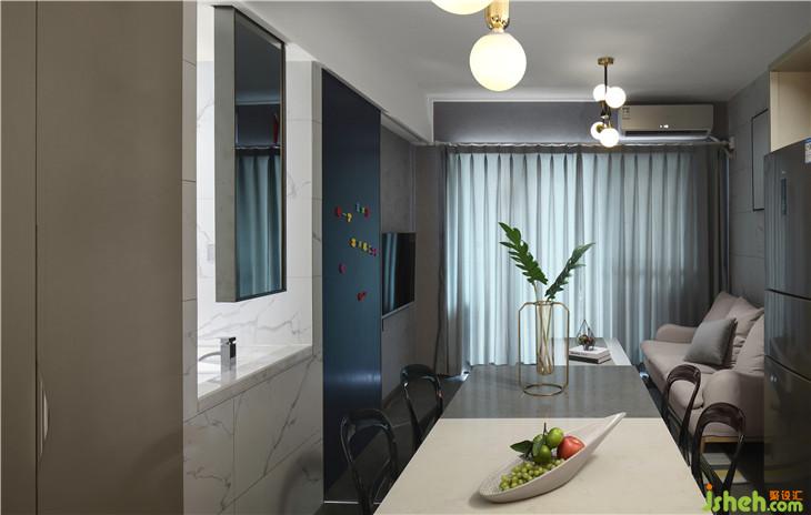 空間規(guī)劃了入戶玄關(guān)區(qū)、就餐區(qū)、兒童游樂(lè)區(qū)、沙發(fā)區(qū)、洗簌區(qū),倆臥室、衛(wèi)生間、陽(yáng)臺(tái)。入口是一個(gè)玄關(guān)區(qū)域,原結(jié)構(gòu)大門直對(duì)這臥室門,臥室門又直接對(duì)著窗戶,這在風(fēng)水上是忌諱的,所以設(shè)計(jì)一個(gè)玄關(guān)區(qū)域,一盆綠色植物讓空間充滿了靈動(dòng)。餐桌是自己定制的,2.3米長(zhǎng),分為兩部分,就餐區(qū)及裝飾區(qū),灰白大理石的臺(tái)面及定制的黑色鐵架腳。沒(méi)事的時(shí)候就跟孩子在桌面上玩游戲,很好。一扇移動(dòng)的深藍(lán)色黑板推拉門,連接了兒童游樂(lè)區(qū)及沙發(fā)區(qū)域,客廳電視藏在背后,想看電視的時(shí)候輕輕移動(dòng)推拉門,電視就完全呈現(xiàn)出來(lái)。餐桌旁特意制作了個(gè)柜子,做為孩子的收納柜,孩子玩好玩具,就收納在柜子里,這樣,就不會(huì)凌亂了。大理石制作的洗漱臺(tái)及懸掛的鏡子,讓采光及通風(fēng)得到了良好的作用。