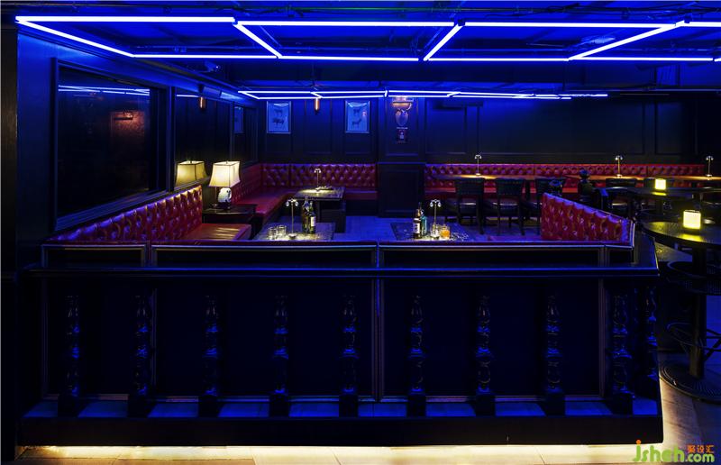 現(xiàn)代社會的消費者,在酒吧場所進行消費時往往帶有許多感性的成分,容易受到環(huán)境氛圍的影響,所以突出舞臺燈光不同的變化、不同的光束、不同的色彩能直接觸動觀眾的心,色彩,燈光也是營造氛圍的重要手段,秘窖酒吧以沉穩(wěn)的灰藍色為主,以具備親和力的灰褐色為輔,其中穿插少量亮色,搭配紅色皮革軟包體現(xiàn)穩(wěn)重中的活力。這幾種顏色都有很強的現(xiàn)代感,具有沉穩(wěn)、靡麗的視覺感,彰顯了整體風格的頹廢與華麗。