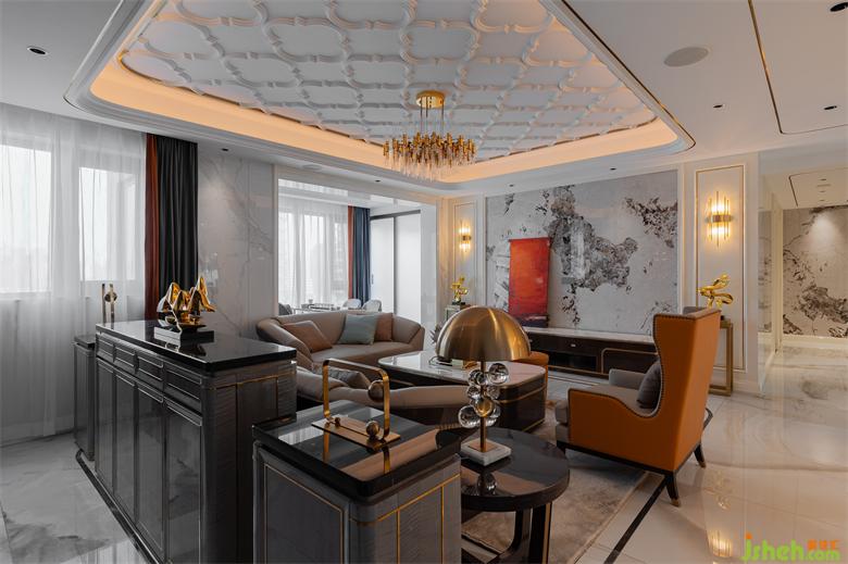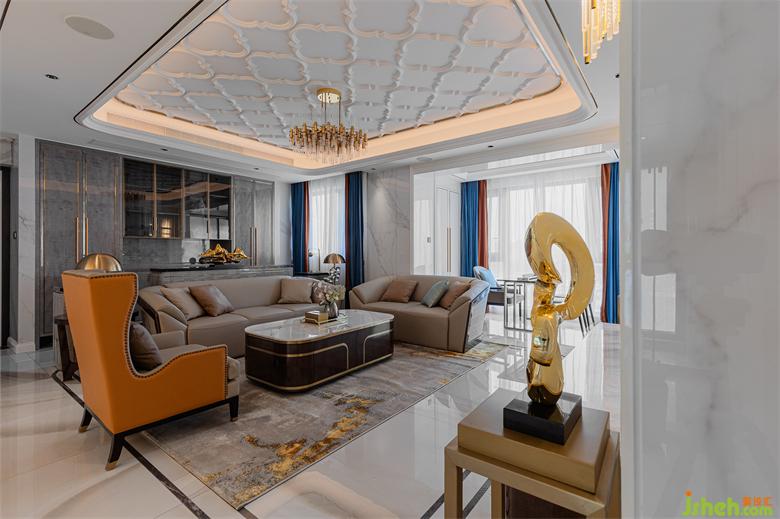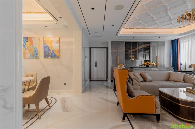 本大平層設(shè)計(jì)位于五緣灣核心地段,屬于精品大平層戶型,設(shè)計(jì)風(fēng)格以簡(jiǎn)歐輕奢為主。設(shè)計(jì)師在顛覆傳統(tǒng)的歐式風(fēng)格中,融入混搭與現(xiàn)代輕奢元素后,更加凸顯傳統(tǒng)與現(xiàn)代的魅力。主體采用暖白色調(diào),運(yùn)用素雅灰作為搭配色,少量橙色、藍(lán)色作為點(diǎn)綴之筆,簡(jiǎn)歐與現(xiàn)代輕奢的結(jié)合,使效果上沒(méi)有像傳統(tǒng)歐式那么豪華,但又不會(huì)太簡(jiǎn)單,簡(jiǎn)約中透出精致和大氣之感,也映襯出主人不凡的生活品味。