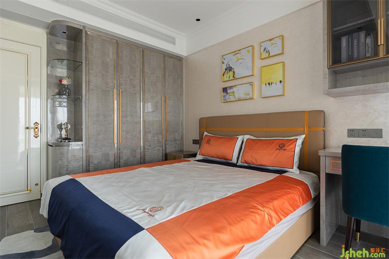 小孩房以米色為主要基調,充滿活力的床品再搭配簡單的掛畫,彰顯小孩天真活潑、率真的天性。