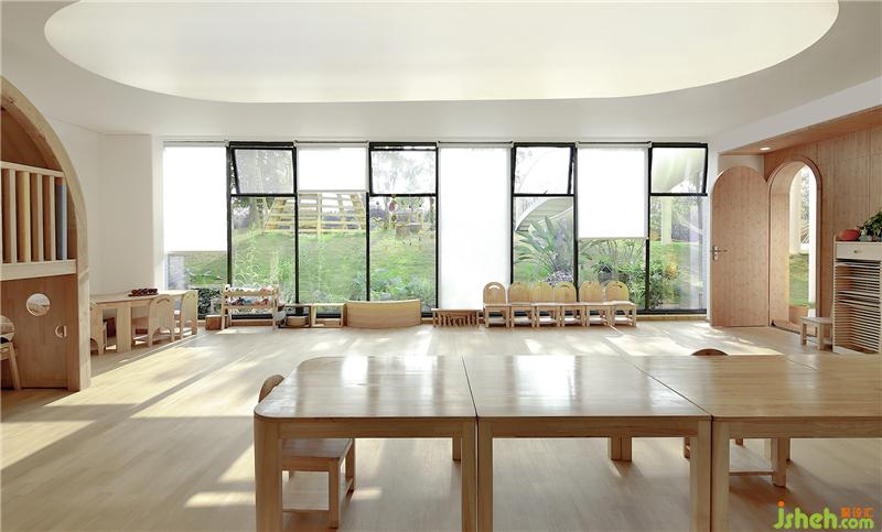 Following the circle stepping stones toGuangMo, children can have a closer contact with nature in the outdoor environment with full of grass, sunshine, earth, sand and stones, and have a variety of interesting experiences.The different functions and sizes of children's amusement facilities ensure the diversity of interests and ensure that children of all ages can find new inspirations here. Bunker, steppingstones, plants with four distinct seasons provide a variety of education methods. Teachers inschool often take children to do things themselves, playing with sand, pinching mud, planting trees, picking fruit, getting close to nature and releasing their authenticity.The presence of hand washing bowl allows children to develop habits of cleaning after playing and adds a sense of tranquility to theschool. Here, the plants with four seasons let children feel the coming and going of different solar terms directly.