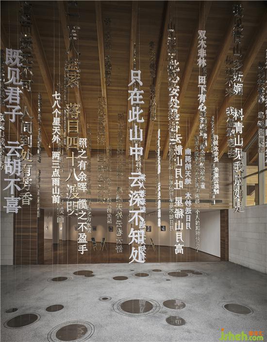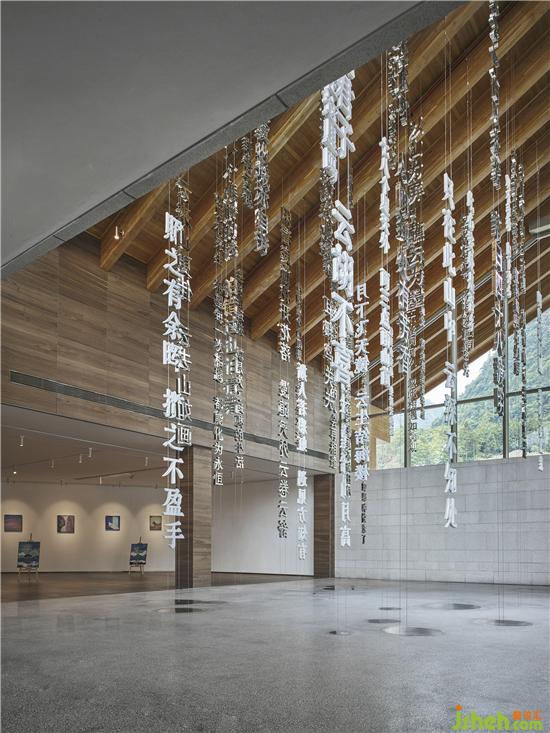 吊掛著的文字裝置如瀑布般從斜屋頂傾瀉而下,在窗外陽光的照射下,為高挑壯闊的空間注入靈性,時(shí)明時(shí)暗,為人們開啟一段浪漫的藝術(shù)之旅。定期舉辦的藝術(shù)展覽與設(shè)計(jì)分享會(huì),悄悄地將藝術(shù)融入到生活之中,給人們帶來直觀而深刻的藝術(shù)體驗(yàn)。藝術(shù)館設(shè)計(jì)