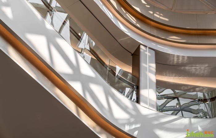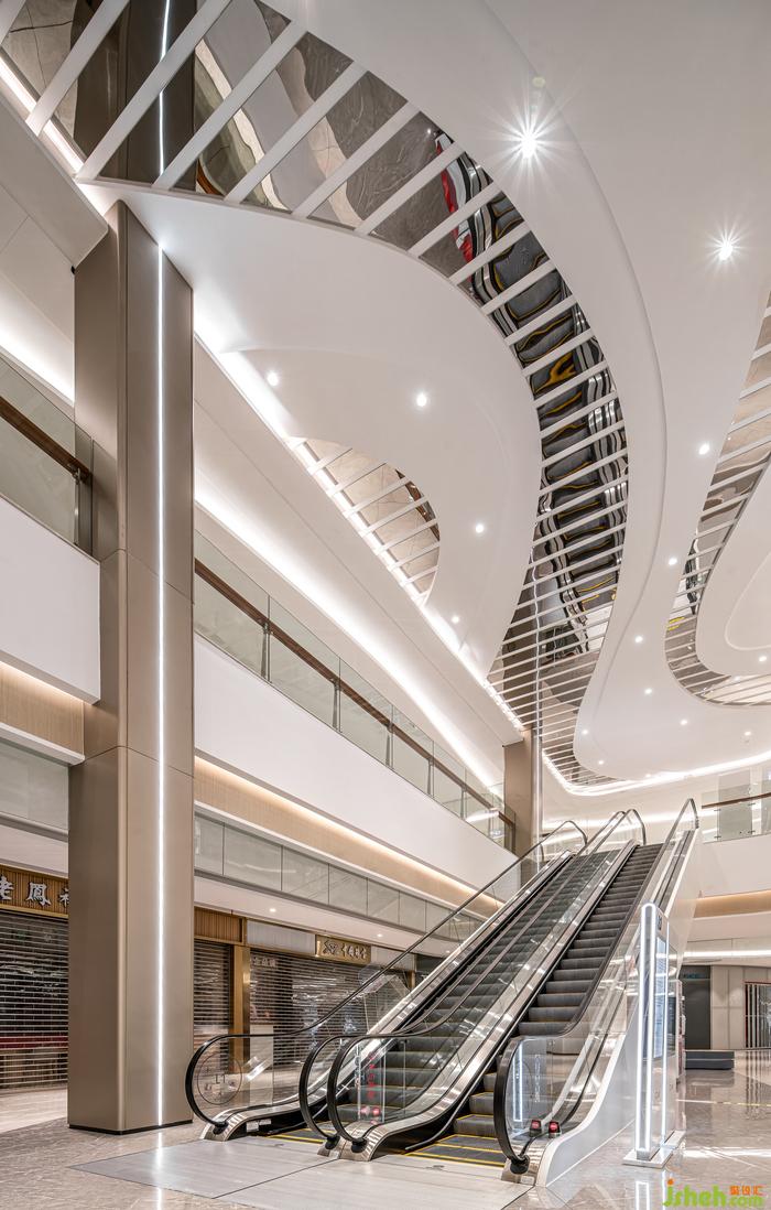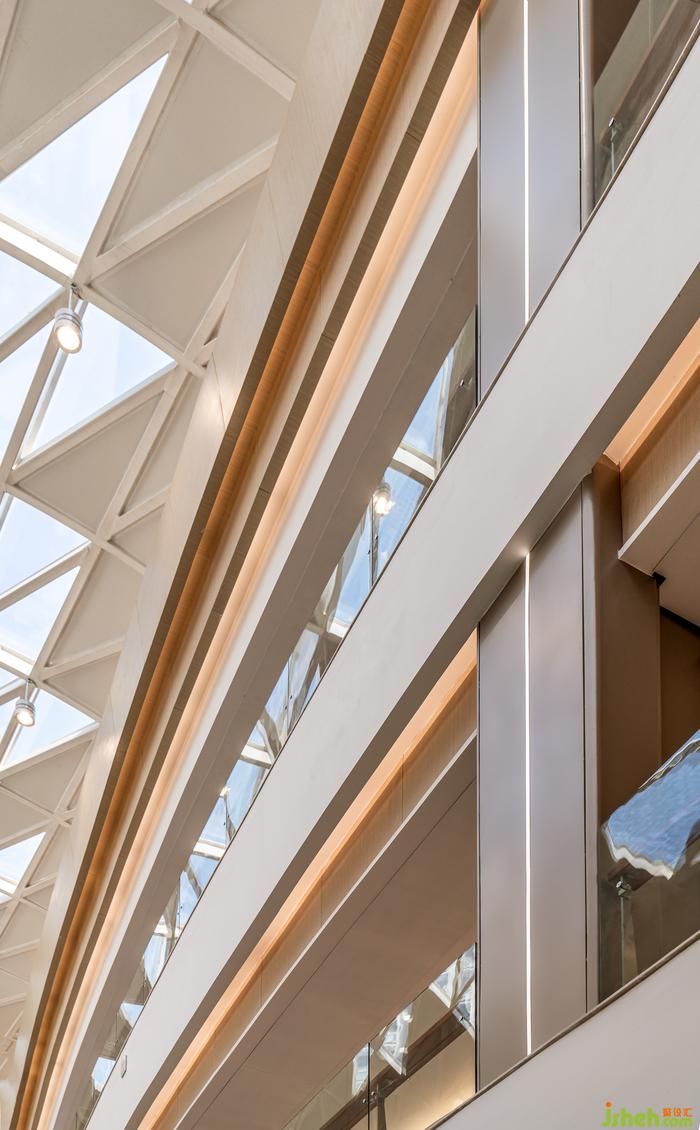空間整體以星云白為基調(diào),輔以溫暖的棕色系,宛如一杯散發(fā)著馥郁清香的奶泡拿鐵,購物中心設(shè)計讓空間充滿甜蜜的氣息。生活的醇香彌散,星河的夢想在空間中演化,天花、扶梯、中庭等建筑結(jié)構(gòu),有機融合星軌的線條,與幾何排列的星幕光源,營造出簡潔、經(jīng)典、時尚的空間氛圍。
