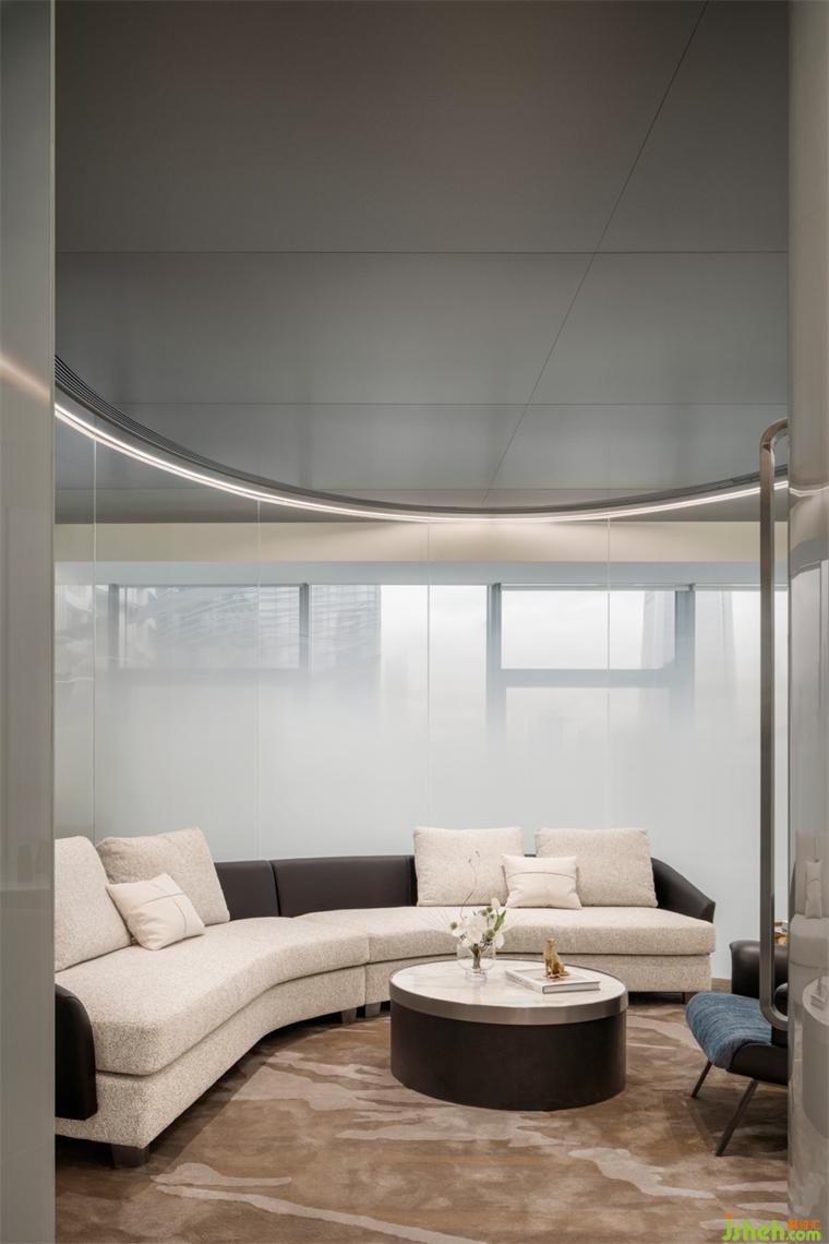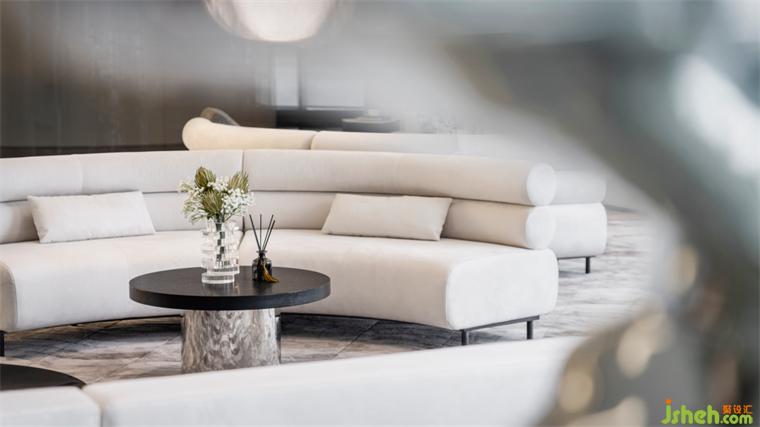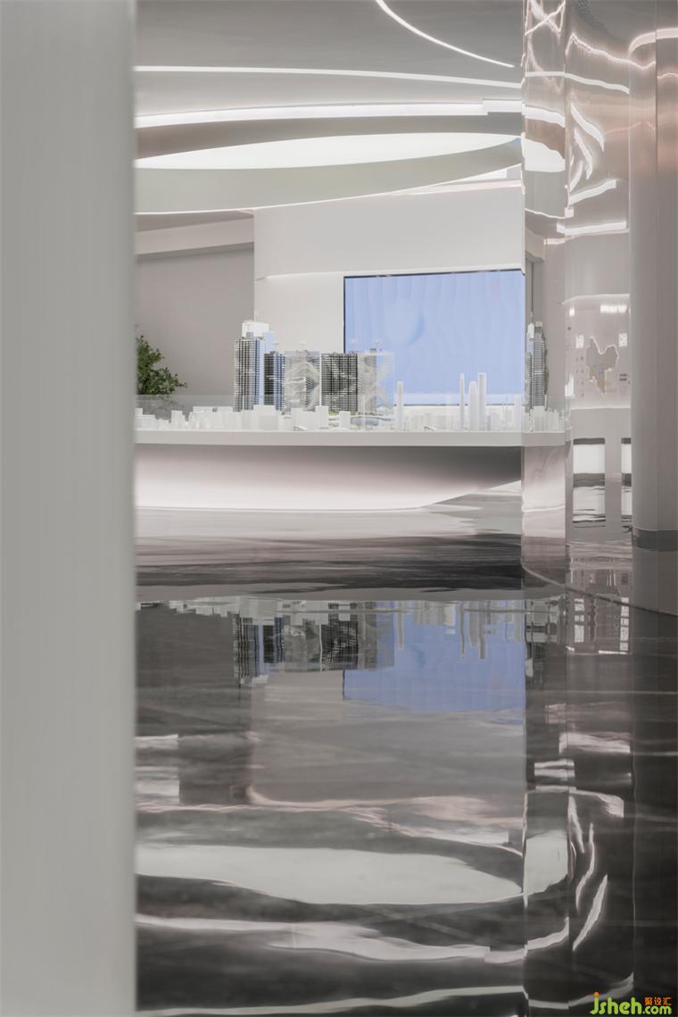 展示空間服務于商業(yè)目的,“如何塑造項目獨特的傳播符號”成為設計的重要課題。LB凌奔設計將曲線語言延伸到空間整體,在形體、動線、家具之間一以貫之,形成整體性的體驗感。從而讓人們領會到這種普遍的聯系,展示中心設計形成本案的獨特記憶。