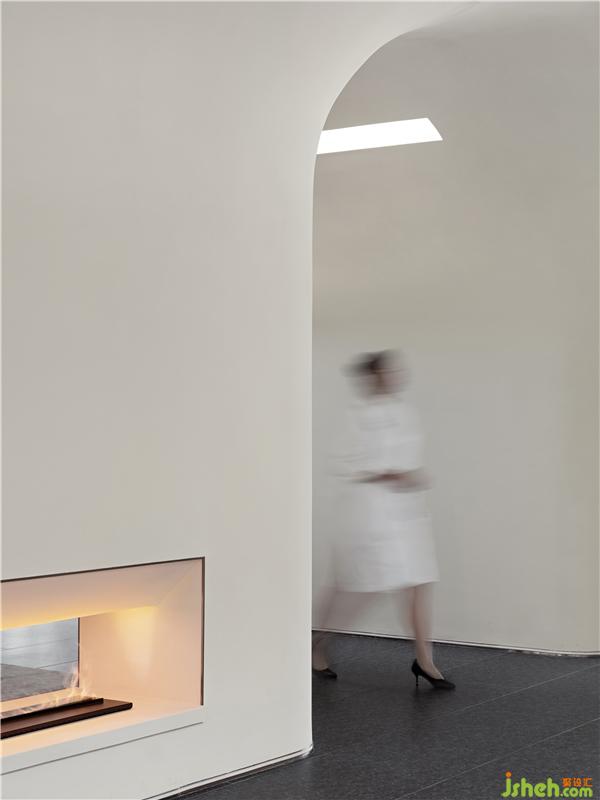 “美術(shù)館”內(nèi)大模型臺身形成“傘拱”覆蓋空間,使幾何分界位置變得模糊,在形態(tài)上呈現(xiàn)出一種具有時間性的展覽空間。
