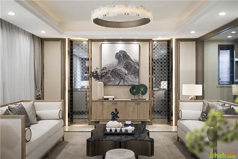 客廳大氣開闊,沒有中式的沉重壓抑,不是純粹的元素堆砌,將清新卻不失典雅的原木色與現(xiàn)代元素結(jié)合在一起。保留中式對(duì)稱,以現(xiàn)代人的審美和功能需求打造富有傳統(tǒng)韻味的客廳空間。