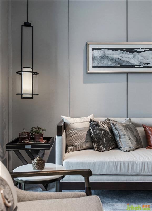 平靜的詩(shī)意空間里展開(kāi)的是一幅從唐詩(shī)里復(fù)刻下來(lái)的畫(huà)卷:溫茶煮酒,三五好友談古論今。山水之道歷來(lái)是中國(guó)文人熱衷的話題。山水,是真正屬于中國(guó)人的精神世界。沙發(fā)背景的配畫(huà)以及餐廳和臥室都有它的身影,它們?cè)谀瑹o(wú)言中締造出居室的文化意境。