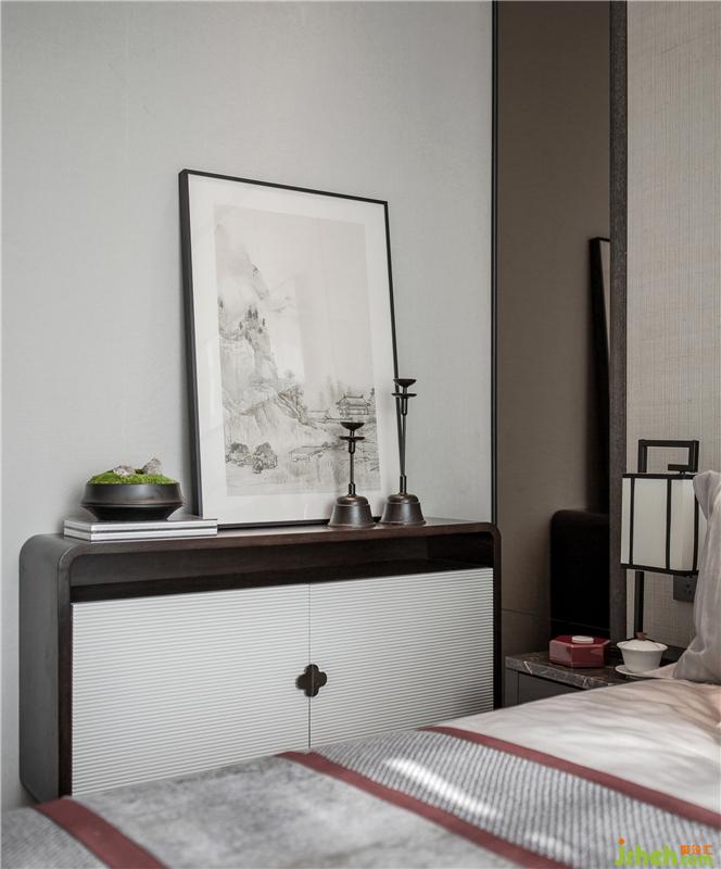 臥室在色彩方面秉承了傳統(tǒng)古典風(fēng)格的典雅和華貴,樣板房設(shè)計(jì)在配飾的選擇方面更為簡潔,更加流暢地表達(dá)出傳統(tǒng)文化中的精髓。為了給增添幾分暖意,飾以精巧的燈具和雅致的掛畫,使整個(gè)空間在濃濃古韻中滲透了幾許現(xiàn)代氣息。