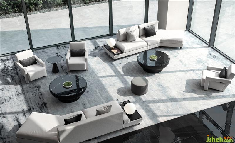 墻體結(jié)合水平方向的橫挑,除了自身的顏色以及自然的肌理,溫暖了空間的色差,捕捉著一天當中光影的變化。售樓處裝修設(shè)計平衡了空間中的色彩對比。