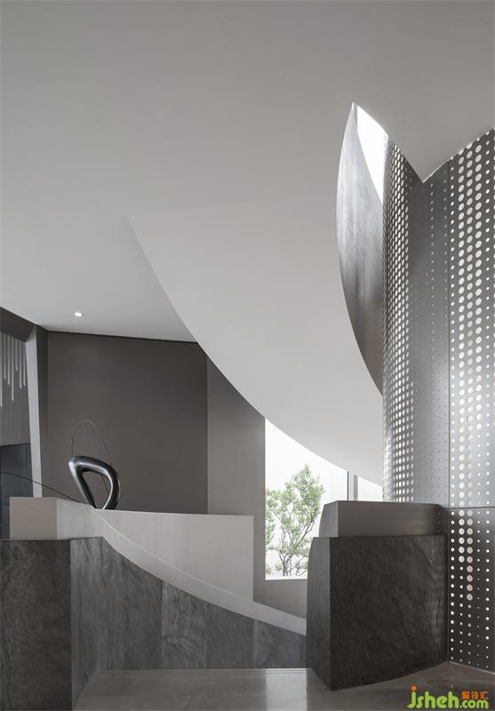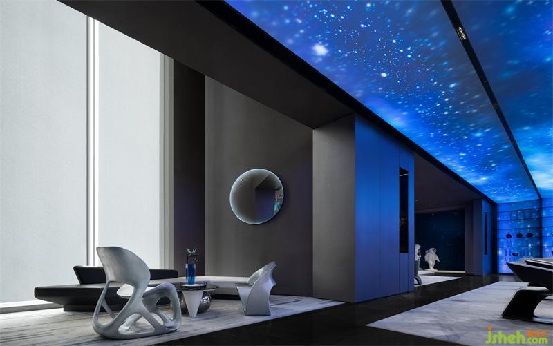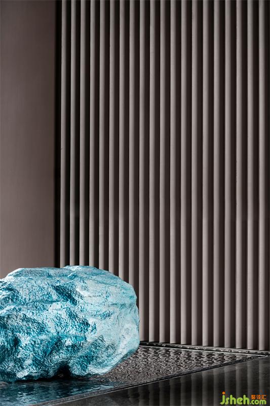 淙淙流水之上,隕石不再?zèng)]有溫度,這是專(zhuān)為旅客進(jìn)行太空穿梭收集的能量石。水石相生,激蕩出宇宙中最原始的能量和秩序。營(yíng)銷(xiāo)中心設(shè)計(jì)沙盤(pán)區(qū)一角的藝術(shù)裝置,在水景中放置“藍(lán)色隕石”,通過(guò)隕石的棱角與建筑及觀者對(duì)話。太空旅客在此涉取靈感和能量,構(gòu)筑一個(gè)微妙宇宙。
