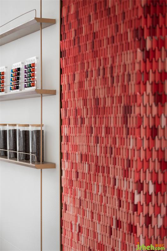在請上用大面積的紅色基調(diào),在純凈利落的白色背景下加入紅色點綴內(nèi)部空間的雛形,細(xì)節(jié)處輔以不同的新材料,讓那抹代表著火熱的紅色營造視覺焦點??臻g天花幾條界定空間的弧線創(chuàng)造了視線與動線的延伸并讓日光灑于其上而形成時間的印跡。
