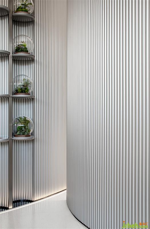 在“森林”那邊,拉槽墻面上存放著的,是延續(xù)著水吧區(qū)科技感的LAB實驗藝術柜,13列各種形態(tài)的微型森林陳列在此。正如所有的藏物之所,都封存或隱藏著夢想的秘密。吸引人們走近這面“l(fā)ab”墻,就會發(fā)現(xiàn)各種關于藝術的暢想,和體驗到拆盲盒的驚喜,生活體驗館設計實現(xiàn)功能與美學的有機調(diào)和,更解鎖了生活場景、商業(yè)業(yè)態(tài)、互動空間等多維多元的社區(qū)公共空間,以復合、疊加的業(yè)態(tài)為社區(qū)注入源源不斷的活力,恰到好處地滲透于使用者的日常生活之中,讓人尋回內(nèi)在的充盈和精神的愉悅。