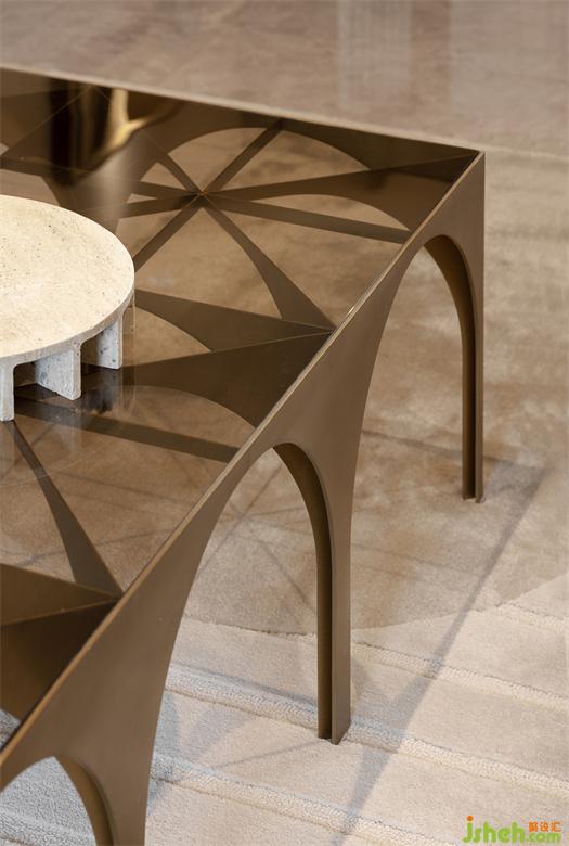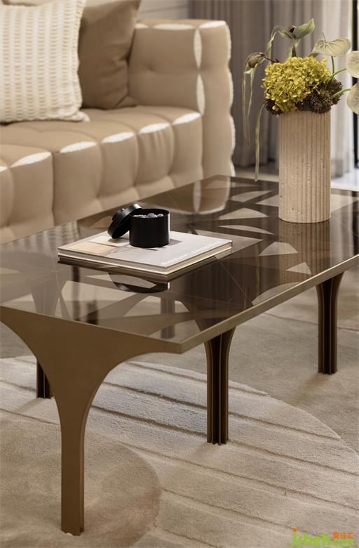 空間內(nèi)多次運用斯卡帕疊級元素拱門及幾何圖形貫穿空間,廈門湖畔潤璟樣板房設(shè)計以宜人的尺度,展示空間的幾何比例關(guān)系,描繪界限的同時巧妙地過渡不同的部分,極具裝飾性意義。
