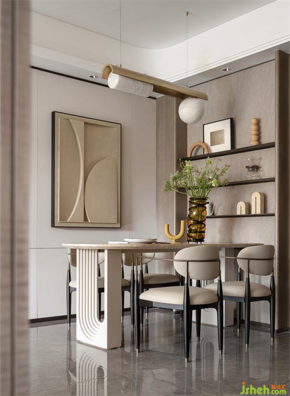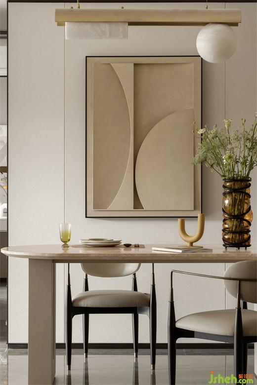 以設(shè)計的力量激發(fā)創(chuàng)新的潛能,借由色彩散發(fā)著的淡雅的異國風(fēng)情,為客廳素雅精致的格調(diào)增添了活力。廈門湖畔潤璟樣板房設(shè)計將概念化轉(zhuǎn)譯為現(xiàn)實空間藝術(shù),打破地域限制,重新構(gòu)建理想的浪漫生活。從生活、娛樂、休息角度整體出發(fā),形成一種自然的和諧。人文與藝術(shù),自然與生活,融合藝術(shù)、人文、自然、生活的元素,訴說著每一個都市家庭對生活的憧憬。藝術(shù)與生活的交融,形成一種優(yōu)雅的現(xiàn)代語言。簡約的形態(tài),柔美的線條,將現(xiàn)代藝術(shù)審美融入空間。