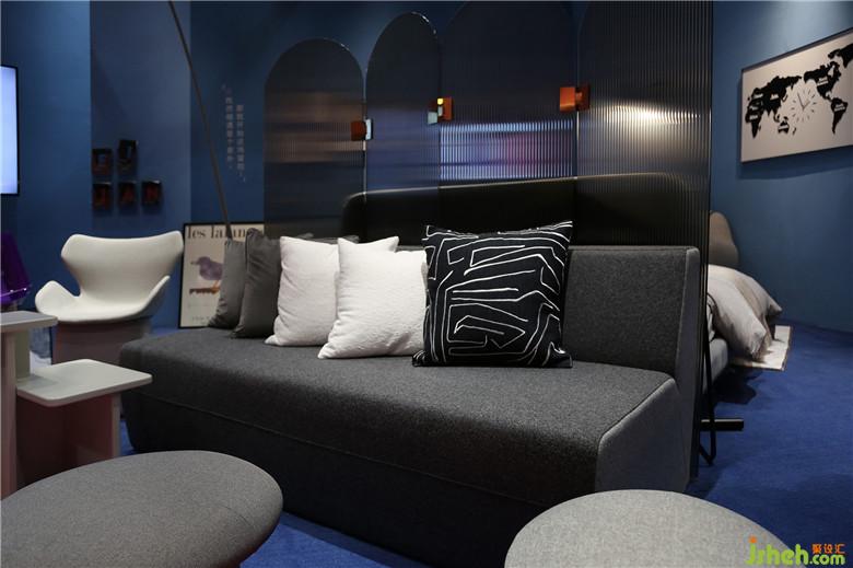 對角線的另一面,男生臥室則以大面積星辰藍作為空間主基調,淺灰家具作為主體。以方形款式家具,搭配金屬主題藝術品,營造與女孩空間截然相反的空間性格。