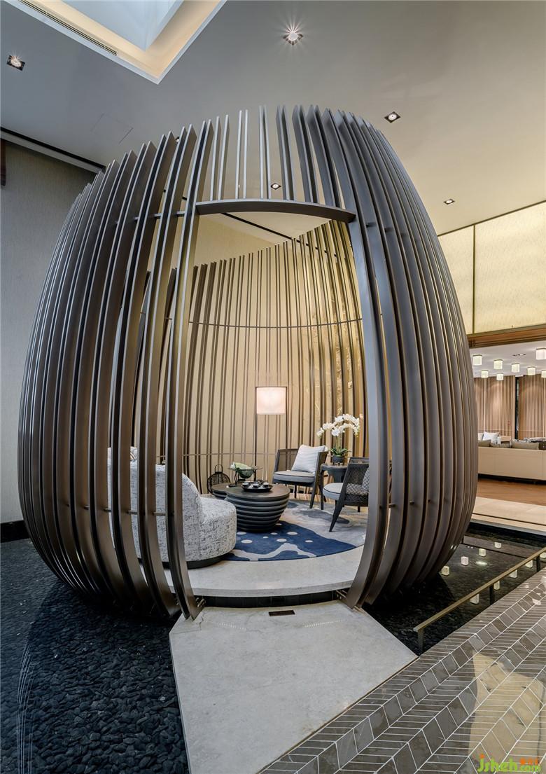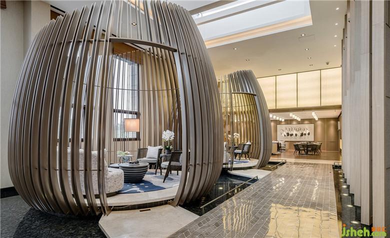 項(xiàng)目緊鄰西安曲江遺址公園,依托周邊豐富的旅游文化資源和人文傳統(tǒng),恢復(fù)性再造曲江南湖、曲江流飲、漢武泉、宜春苑、鳳凰池等歷史文化景觀,再現(xiàn)曲江地區(qū)“青林重復(fù),綠水彌漫”的山水人文格局,構(gòu)建集生態(tài)環(huán)境重建、觀光休閑娛樂(lè)、現(xiàn)代商務(wù)會(huì)展等功能為一體的綜合性城市生態(tài)和娛樂(lè)休閑區(qū)。設(shè)計(jì)師將“東方園林”的概念植入設(shè)計(jì),運(yùn)用自然景觀的設(shè)計(jì)元素,將室外的園林景觀融入室內(nèi)設(shè)計(jì)。
