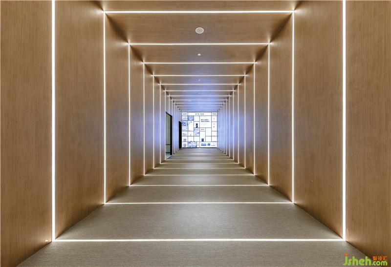 售樓處裝修設(shè)計每個方格的縫隙間射出一道光線,