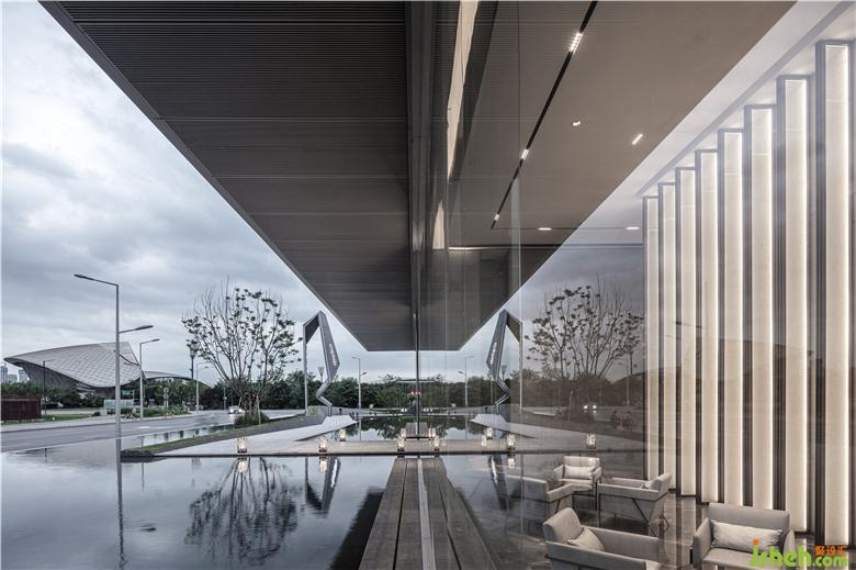 引一池水,置一株樹。洽談區(qū)臨水而設,落地玻璃形成通透的視覺景觀,鏡面澄澈,樹影婆娑,一池一景;環(huán)境的細節(jié)營造令人沉浸其中,欣賞體會。
