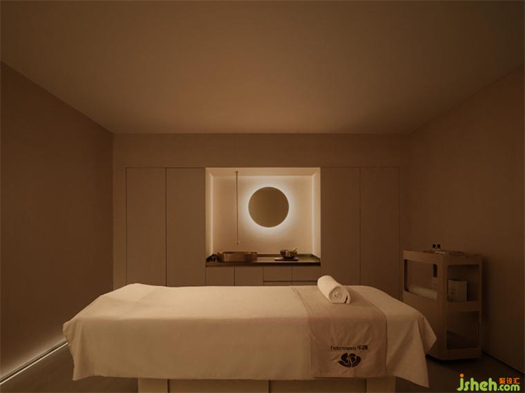 美學(xué)中心設(shè)計(jì)頂面三角型軟膜天光,提高光源安裝高度,讓光充分均勻發(fā)散后,融合到達(dá)地面,如一縷帶紗的陽光。