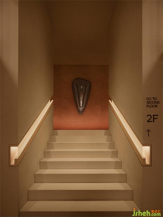 曲山、幽林,帶給人們始于基因的自然歸屬感。取于自然融于“自然”(暗指自然的醫(yī)美),美學(xué)中心設(shè)計(jì)用藝術(shù)的語言通過抽象化的自然曲度置于療愈空間的入口,好似“曲徑通幽處,禪房花木深”,治愈的森林入口就在此處,半遮半掩,引導(dǎo)著來客領(lǐng)略這忘情塵俗的意境。