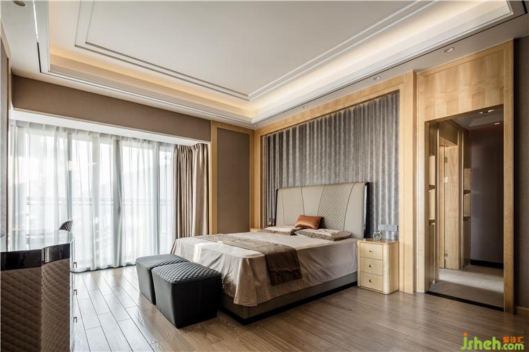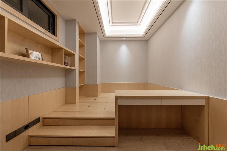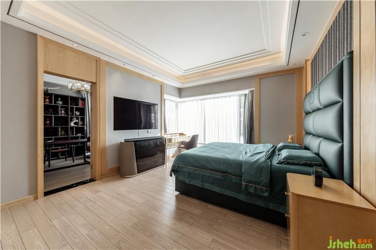 根據(jù)家庭成員的年齡、性格和審美喜好,設(shè)計師融合了多元化材料、幾何造型、線條節(jié)奏,呈現(xiàn)了一個端莊嫻靜的長輩房空間。