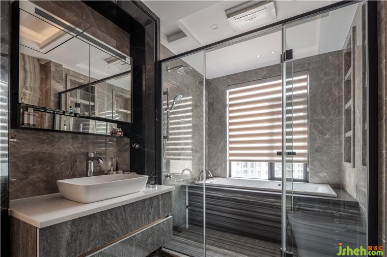 高級的表達是讓空間來定義情緒,主衛(wèi)在大理石冷冽的肌理襯托下,洗滌疲憊的身心,將生活里尋常事物與行為動機變得具有理性詩意,而不僅只是空間的單純使用者。