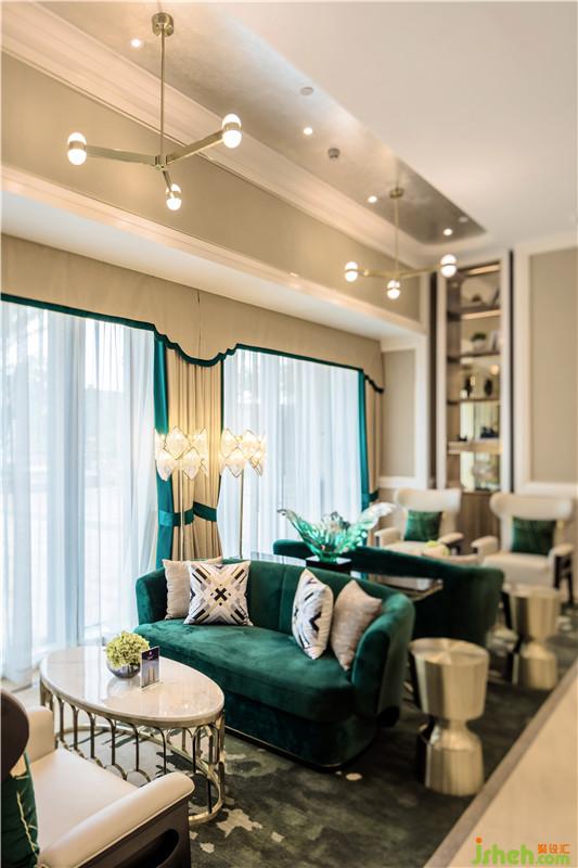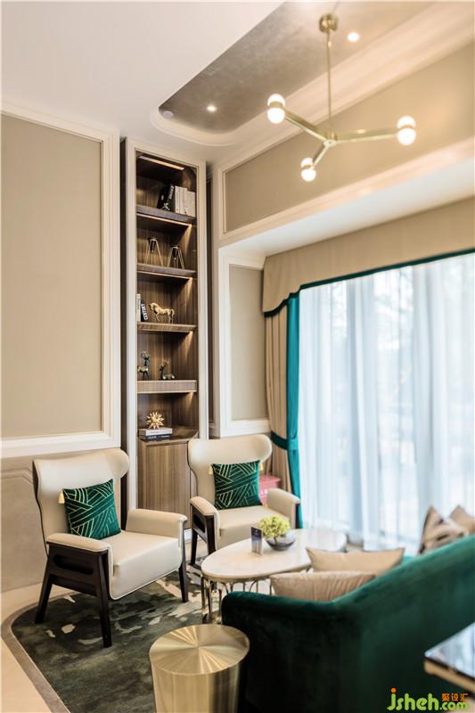 在固有的硬裝色系色中調(diào)以米白、深咖、淺咖的暖色調(diào),使整體空間有一種舒適的感覺,再配合軟飾的翡翠綠,空間整體上突現(xiàn)一種靈動!豐富的氛圍,契合翡翠項目的主色調(diào),并貫穿始終,讓空間有一種非凡的氣質。
