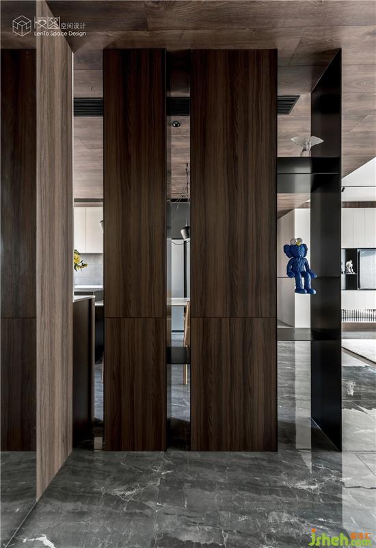 入戶處原有的一面實墻,被具有鞋帽柜功能的隔斷所取代。