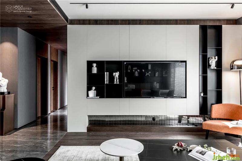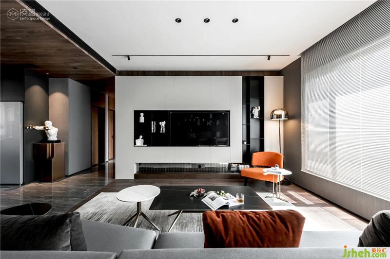 黑、白、灰、橙四種不同色調(diào),冷暖錯落,層次分明,讓空間色彩更加立體豐富。