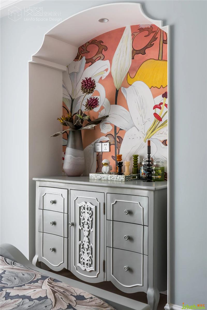 與半墻葉脈花紋墻紙搭配起來生動(dòng)又活潑。