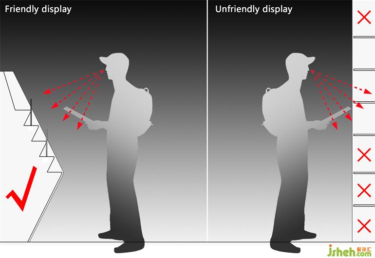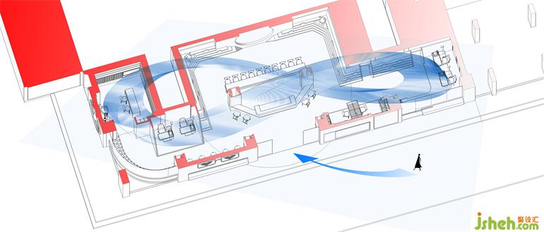 ▲經(jīng)過多次尺寸推敲確定以階梯式陳列方式為主導(dǎo)