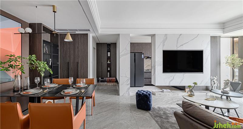 本案主要空間以現(xiàn)代雅致為基調(diào),運(yùn)用現(xiàn)代主義設(shè)計(jì)手法,巧妙糅合空間與家具,打造出一個(gè)現(xiàn)代精致的輕奢空間。The main space of this case is based on modern elegance, using modern design techniques, skillfully mixing space and furniture to create a modern and exquisite light luxury space.